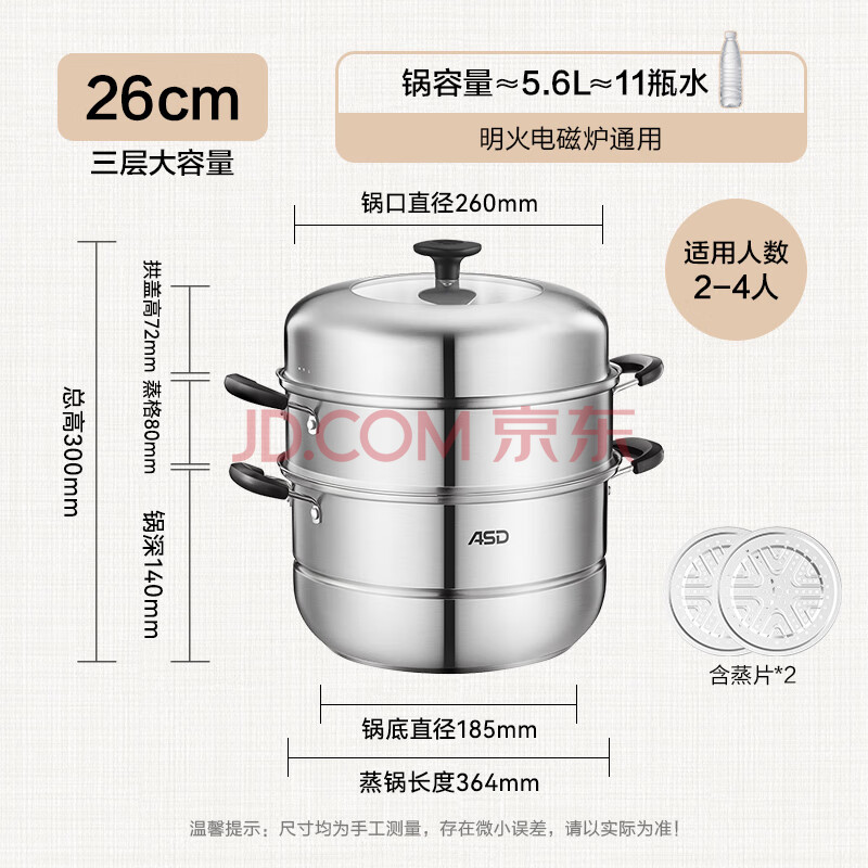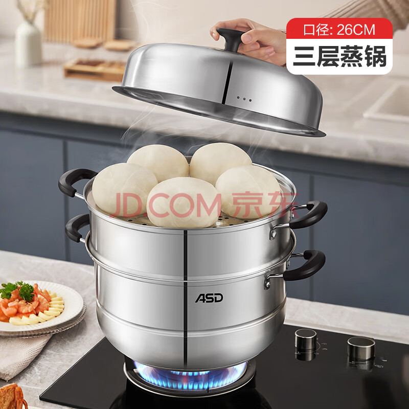 商品相册:爱仕达(ASD)蒸锅不锈钢三层蒸锅家用蒸煮一体汤锅26CM蒸笼电磁炉燃气灶通用B3第