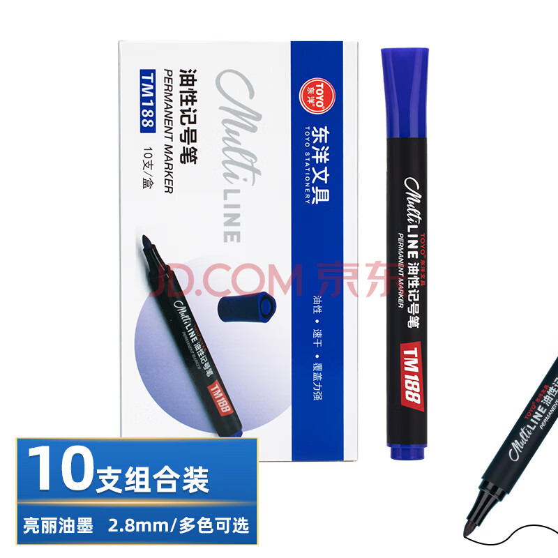 商品相册:TOYO (东洋)TM188、油性、记号笔、轮胎笔、签到笔、多色可选、马克笔、10支装/盒/ 蓝色第