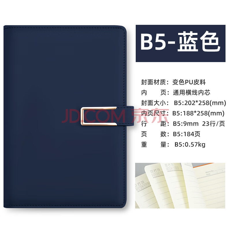 商品相册:嘉然恒商务b5本子笔记本皮面文具大号加厚搭扣记事本日记本工作日志办公会议记录本可定制 蓝色第