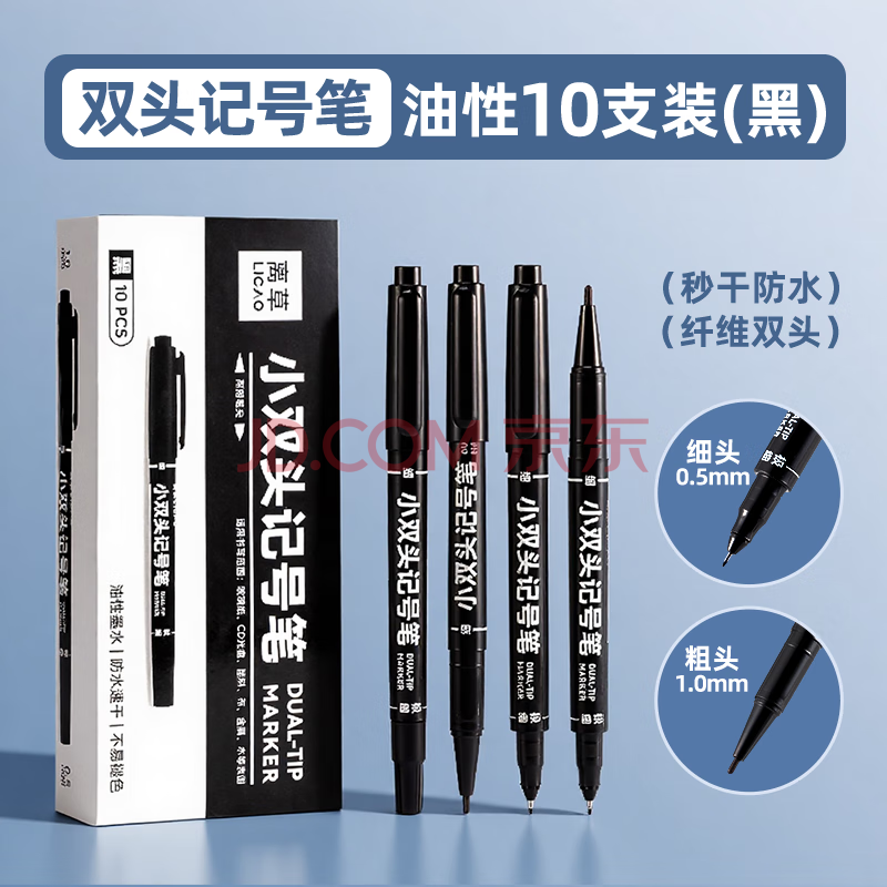 商品相册:离草记号笔马克笔小双头油性勾线笔防水速干细头美术物流记号笔描边标记涂鸦签字笔大容量 10支装第