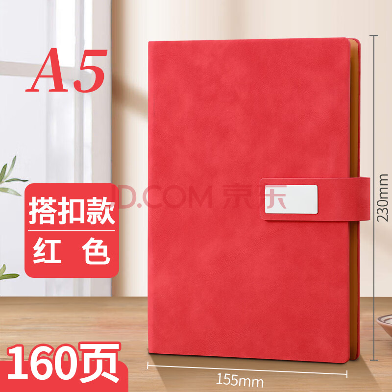 商品相册:嘉然恒 商务活页本加厚羊巴皮笔记本本子文具不咯手活页记事本搭扣日记本办公工作会议记录本可定制 A5红色第
