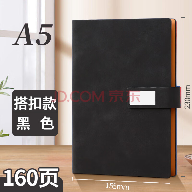 商品相册:嘉然恒 商务活页本加厚羊巴皮笔记本本子文具不咯手活页记事本搭扣日记本办公工作会议记录本可定制 A5黑色第