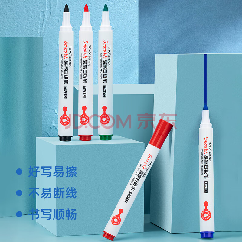 商品相册:东洋(东洋)TW812色泽明亮、白板笔可擦、教师用黑板笔画板写字易擦写粗头大头记号笔10支/盒/ 红色第