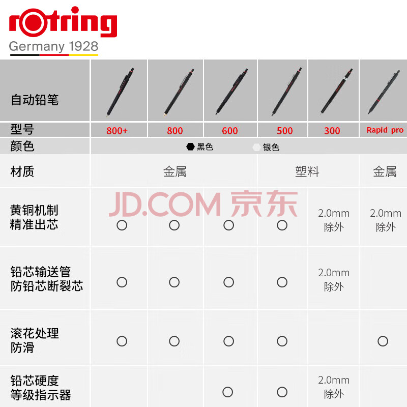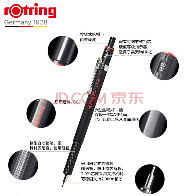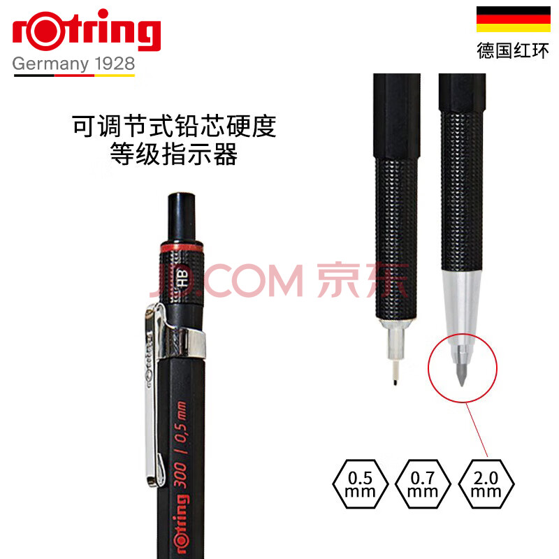 商品相册:红环(rotring)自动铅笔 300系列 2.0mm HB 黑色 单支装第