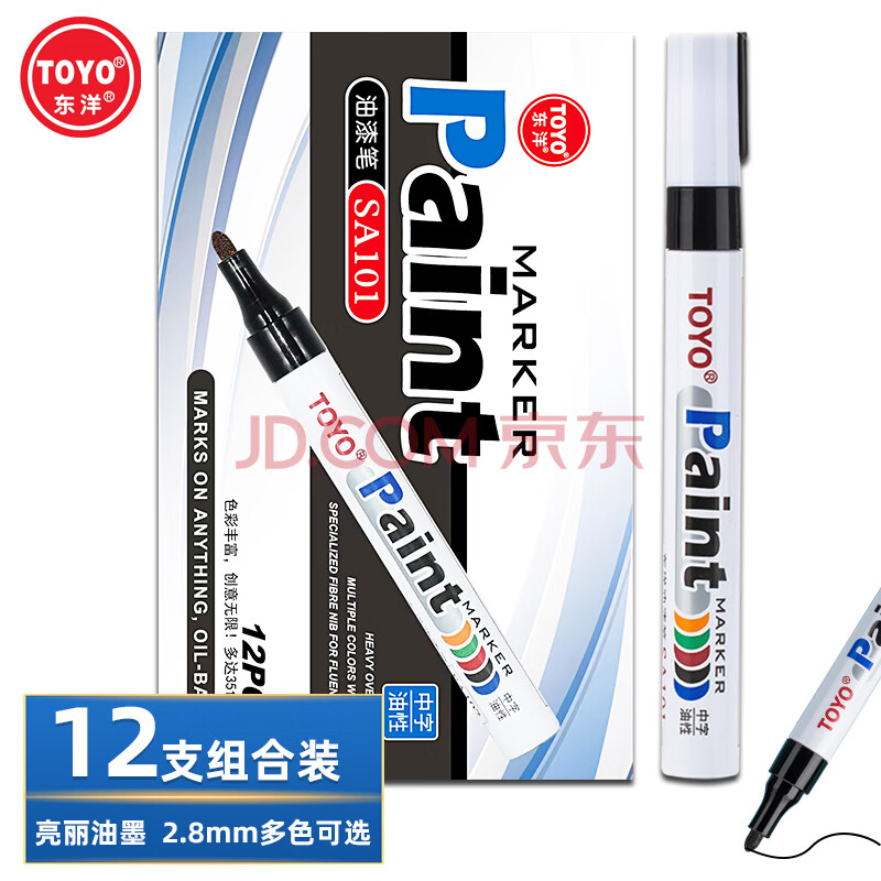商品相册:东洋 (东洋)SA101油性2.8mm油漆笔速干防水耐热记号笔轮胎笔签到笔马克笔12支1盒/粉色 黑色第