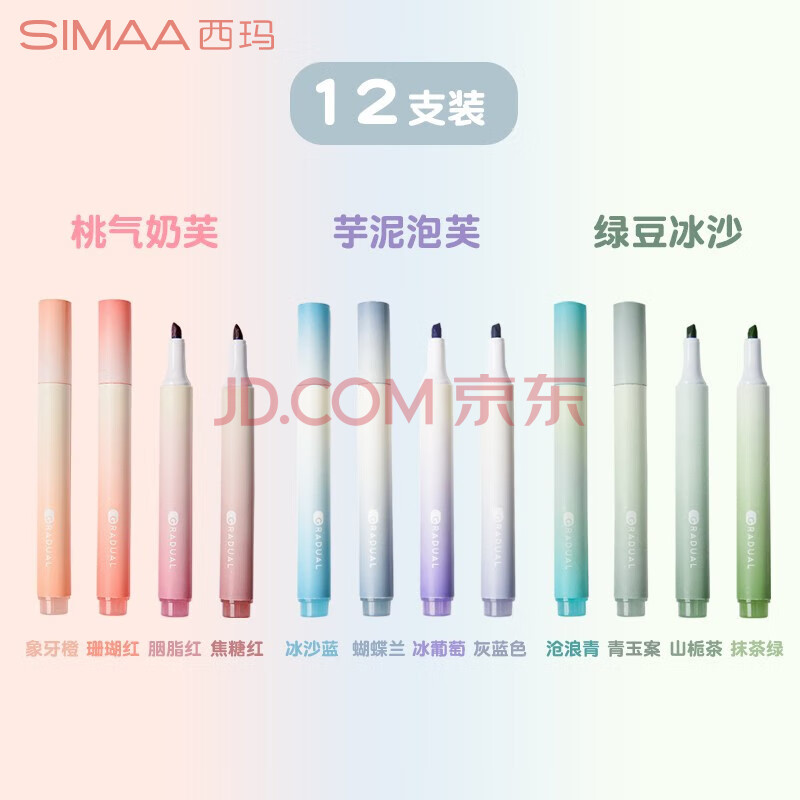 商品相册:西玛(SIMAA)莫兰迪色系荧光笔学生文具考试复习重点记号笔马克笔笔记绘画涂鸦手账 12支装第