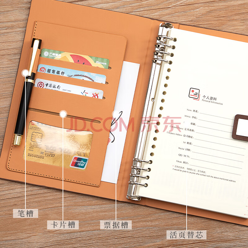 商品相册:嘉然恒 商务活页本加厚羊巴皮笔记本本子文具不咯手活页记事本搭扣日记本办公工作会议记录本可定制 A5蓝色第