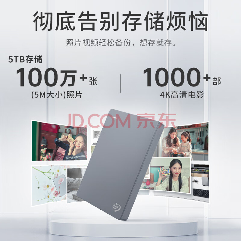 商品相册:希捷(SEAGATE)移动硬盘2TB USB3.0 简系列2.5英寸 灰色 机械硬盘 便携大容量 笔记本电脑外接 外置办公 家庭存储第