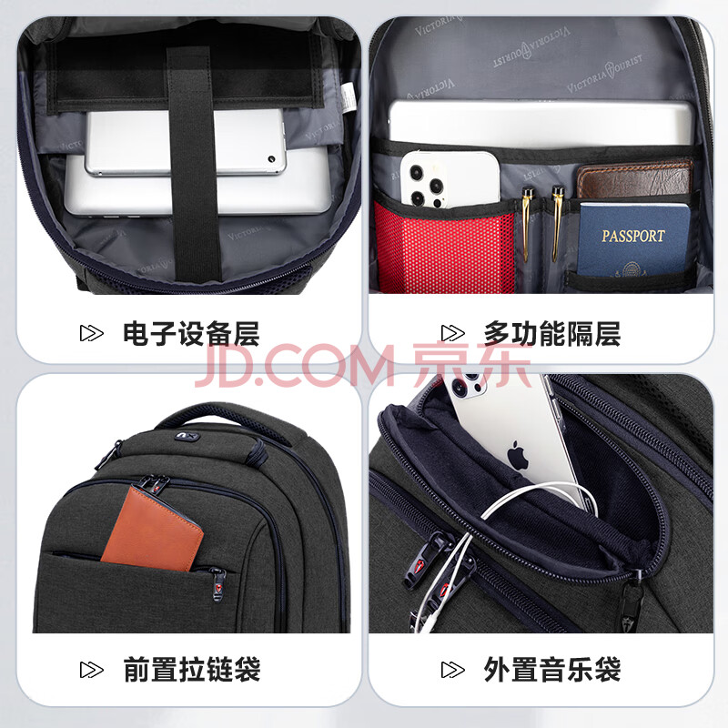 商品相册:VICTORIATOURIST电脑包双肩包男士商务旅行出差16英寸笔记本包大容量双肩包书包第