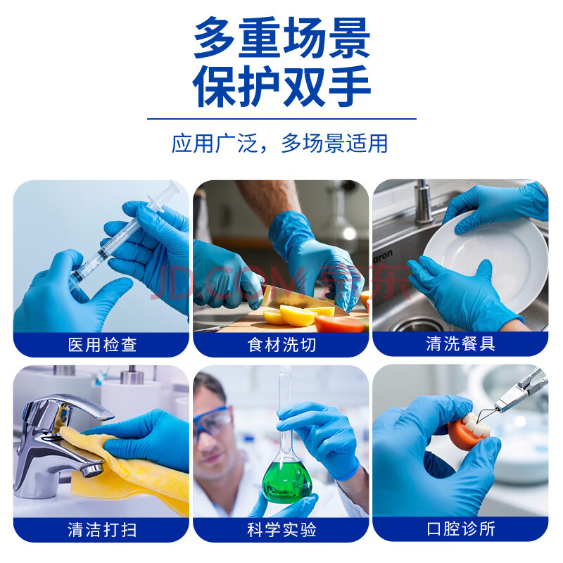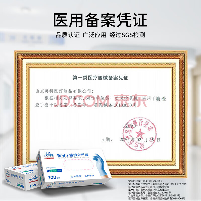 商品相册:英科医疗一次性医用丁腈手套 检查清洁洗碗家务食品级丁晴手套 蓝色M码第