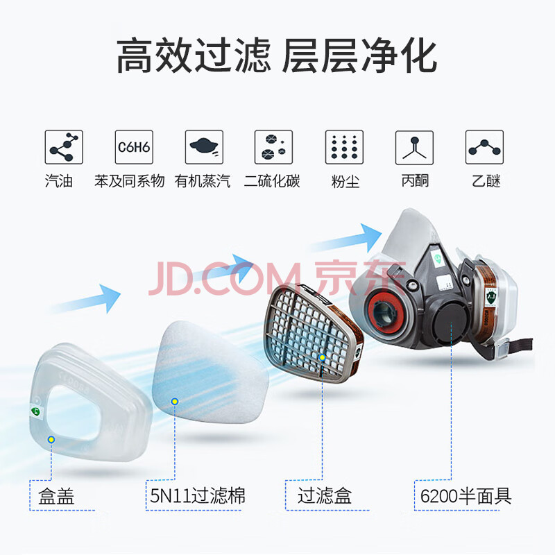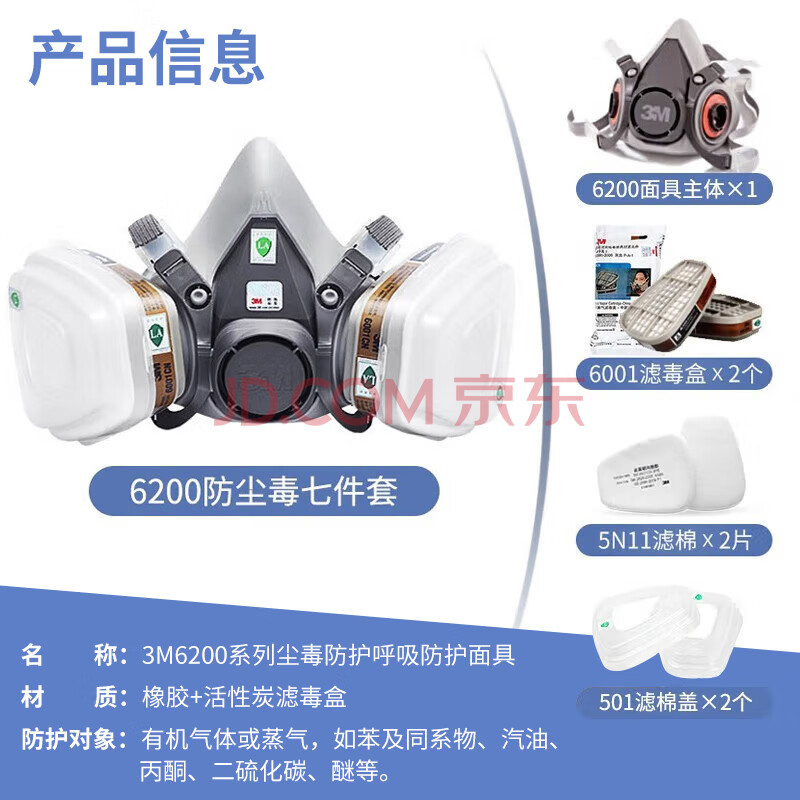商品相册:3M 防沙尘暴雾霾工业化工喷漆防毒面罩滤毒盒防尘620E 6200+6001第