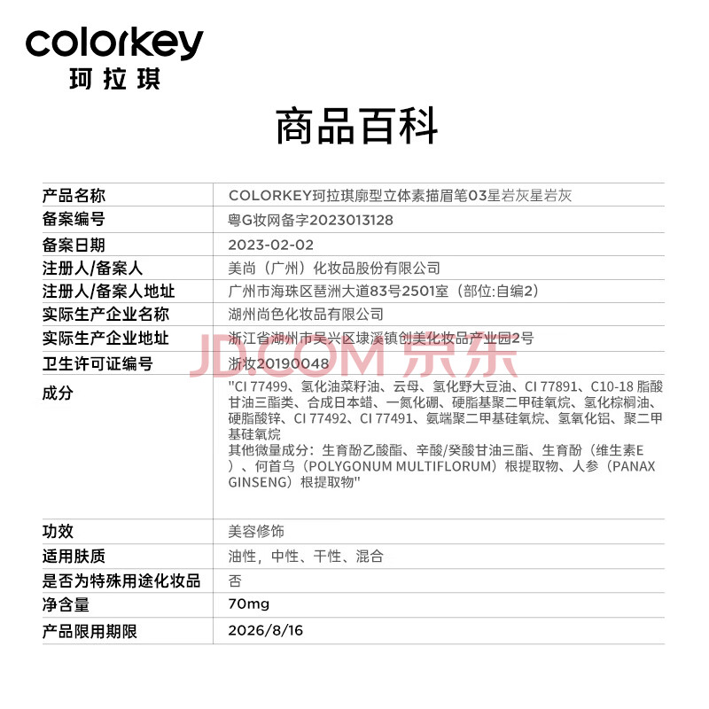 商品相册:Color Key珂拉琪小金筷眉笔防水防汗持久新手易画送女友老婆生日礼物第1张/共2