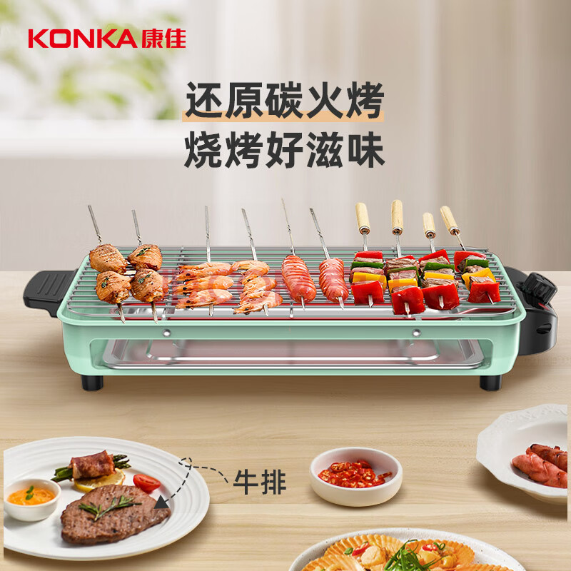 商品相册:康佳(KONKA)电烧烤炉 烤肉锅电烤盘 家用无烟烤盘不粘电烤炉铁板烧烤串机烧烤炉烧烤架 KEG-W1506第
