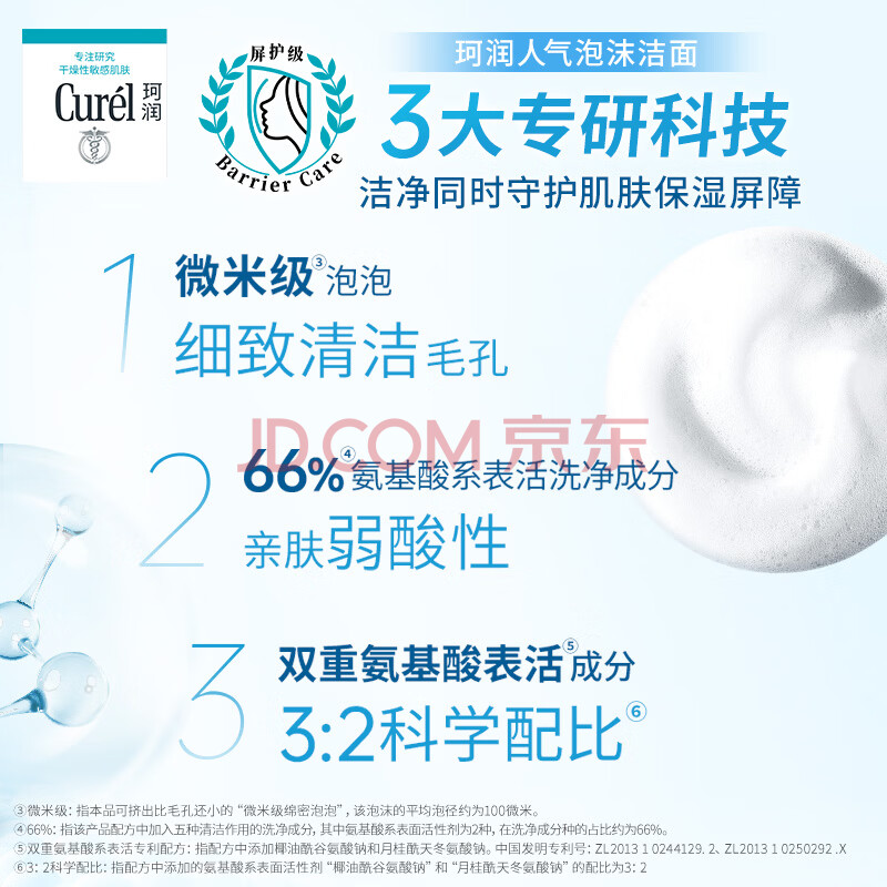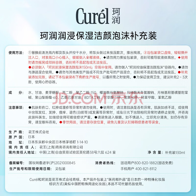 商品相册:珂润(Curel)保湿洁面泡沫补充装130ml 氨基酸洗面奶温和清洁敏感肌男女士自营第