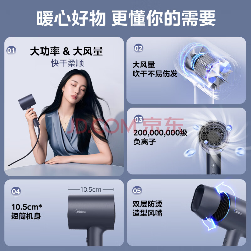 商品相册:美的(Midea)2亿负离子护发电吹风 家用便携护发吹风筒 大功率快干吹风机 MB-AJ0503星夜蓝 节日/生日礼物推荐第