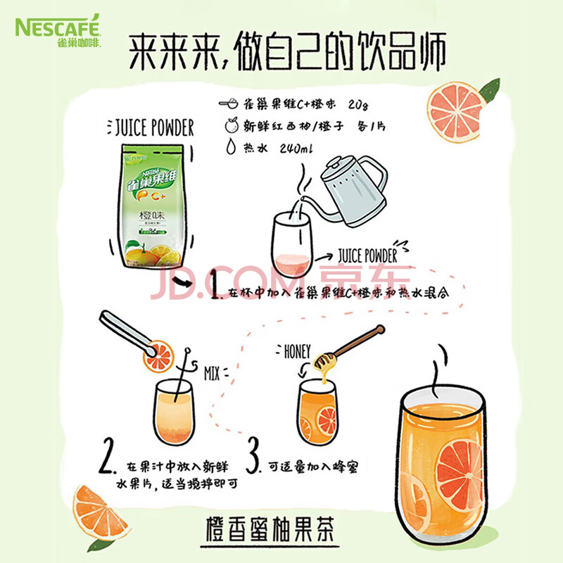 商品相册:雀巢(Nestle)果维C+橙汁味840g/袋 富含维C 低脂果珍冲饮果汁粉第