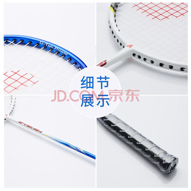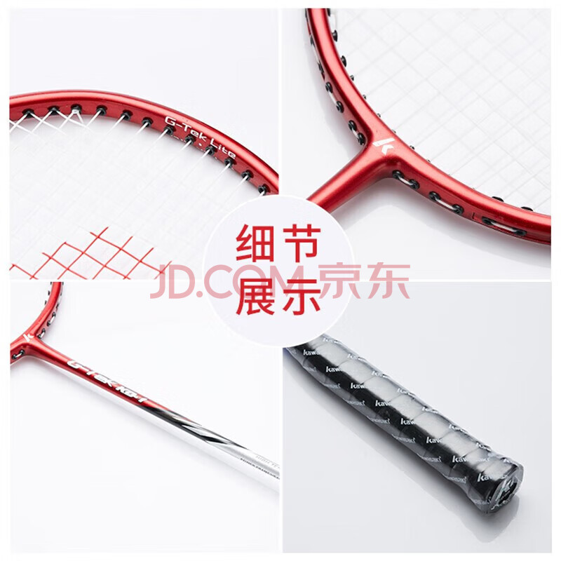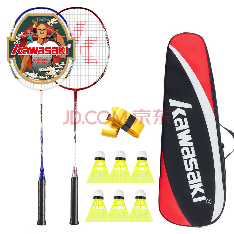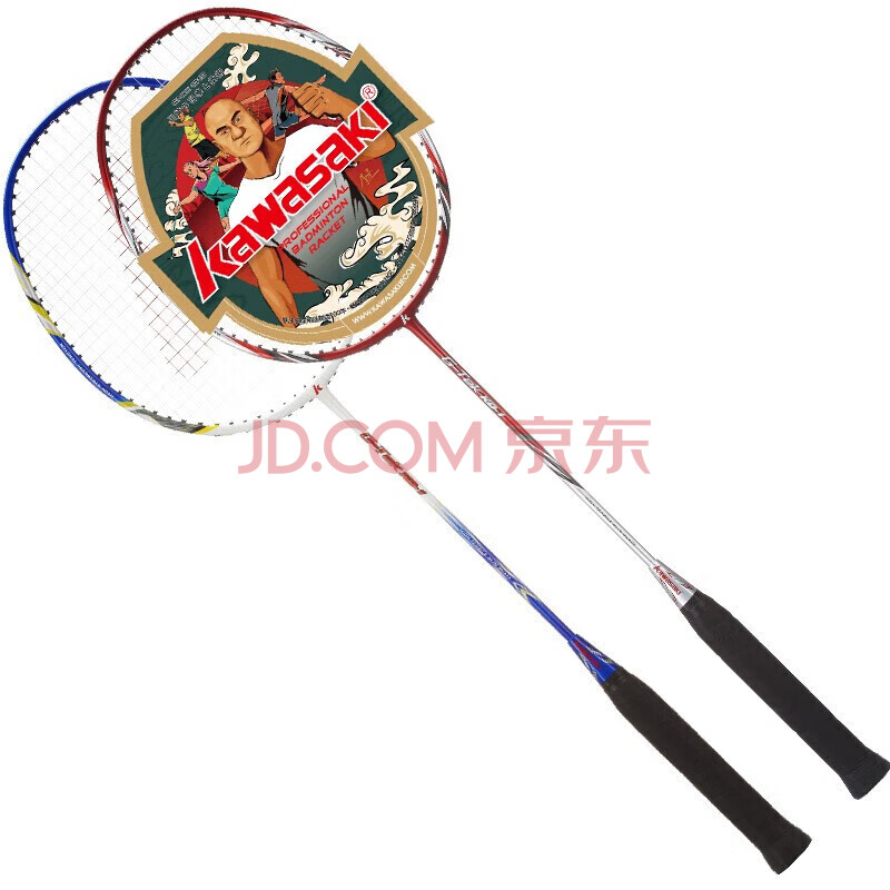 商品相册:川崎(KAWASAKI)羽毛球拍轻量化碳素中杆对拍KD-1蓝红(已穿线+6球+手胶+拍包)第