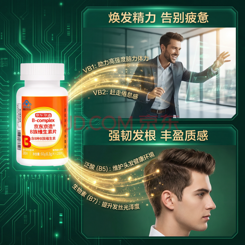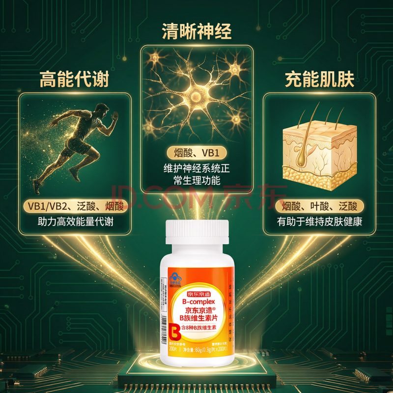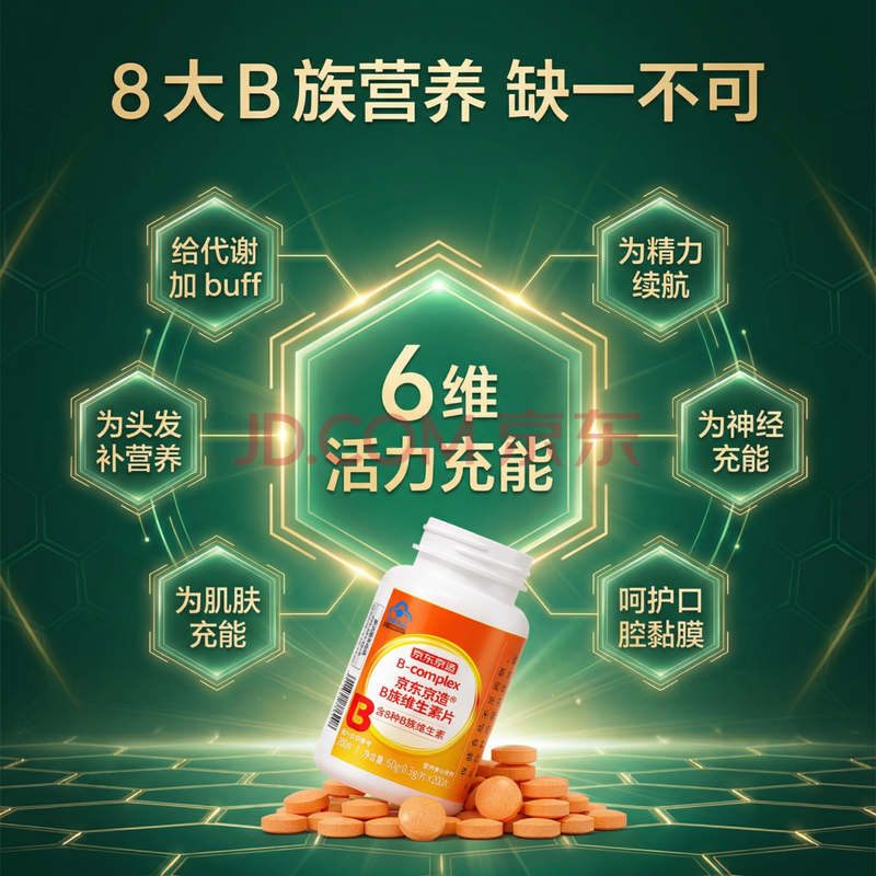 商品相册:京东京造多种复合维生素B族片200片含8种维b1b2b6b12烟酰胺生物素非甲钴胺第1张/共8