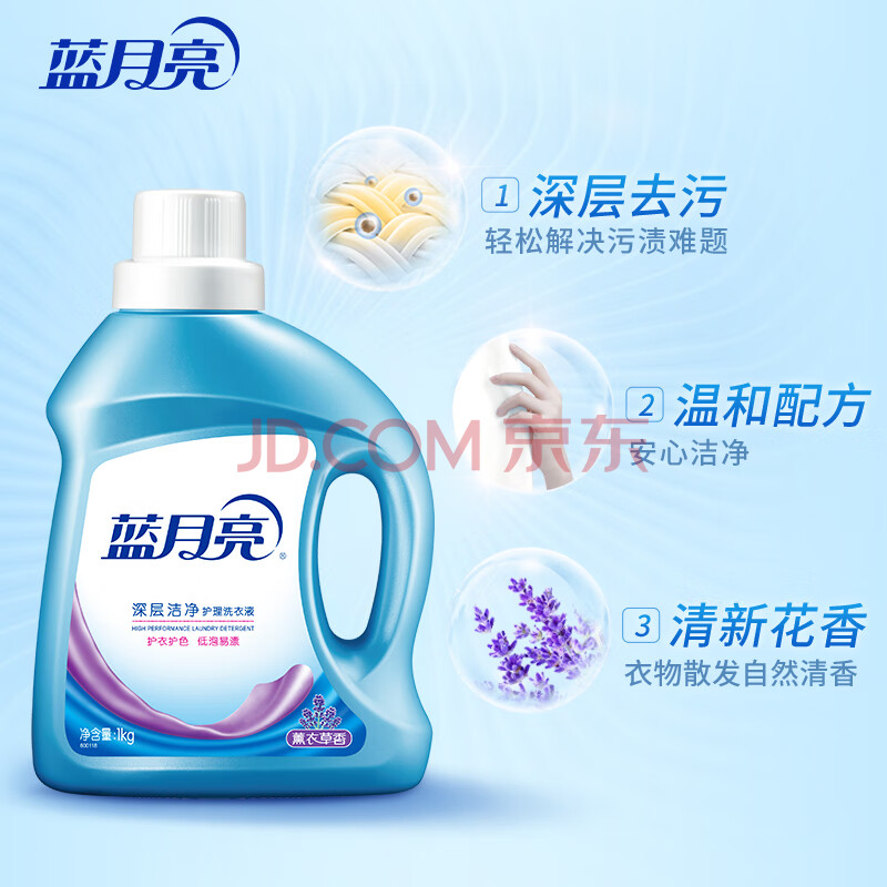 商品相册:蓝月亮洗衣液 深层洁净护理 (薰衣草香)1kg*12瓶 强效去污 企业采购第