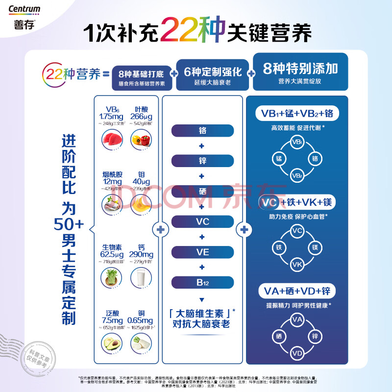 商品相册:善存中老年男士复合维生素 B族B12钙镁铁VD3CE锌硒生物素 银善存160粒第