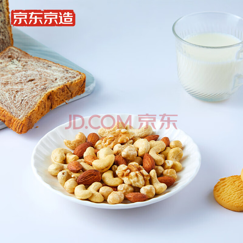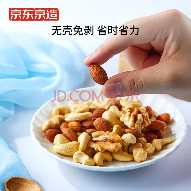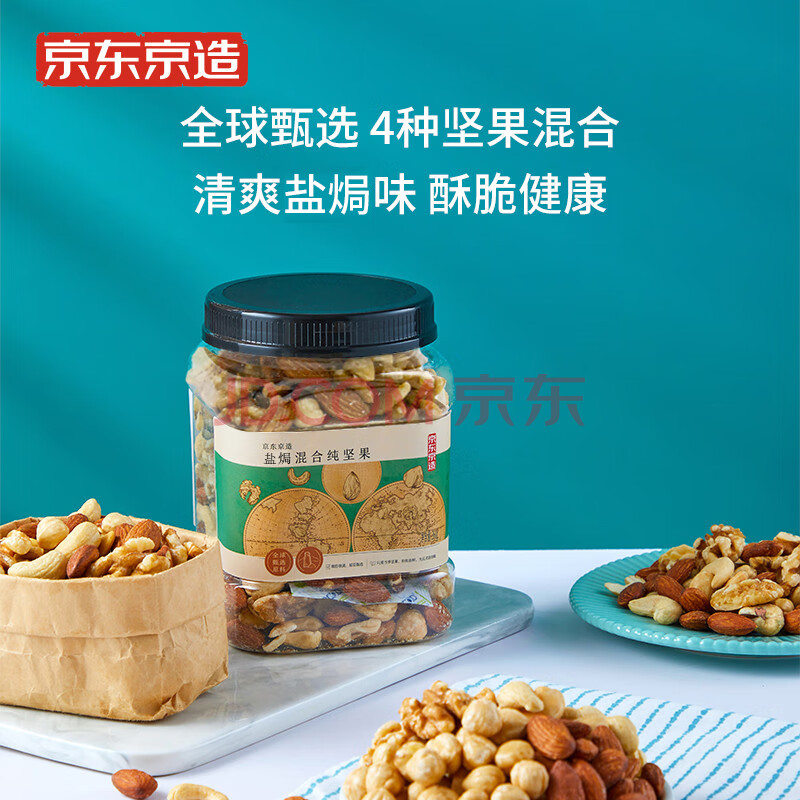 商品相册:京东京造鲜来多 盐焗混合坚果360g每日纯坚果扁桃仁早餐儿童罐装零食第
