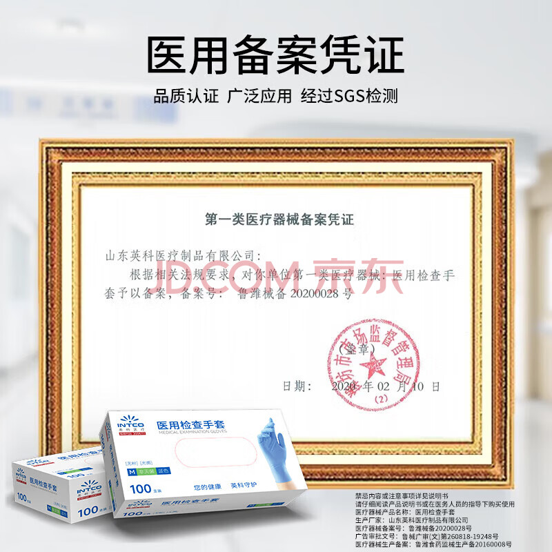 商品相册:英科医疗一次性手套 医用检查手套 加厚耐用 蓝色L码 100只/盒第