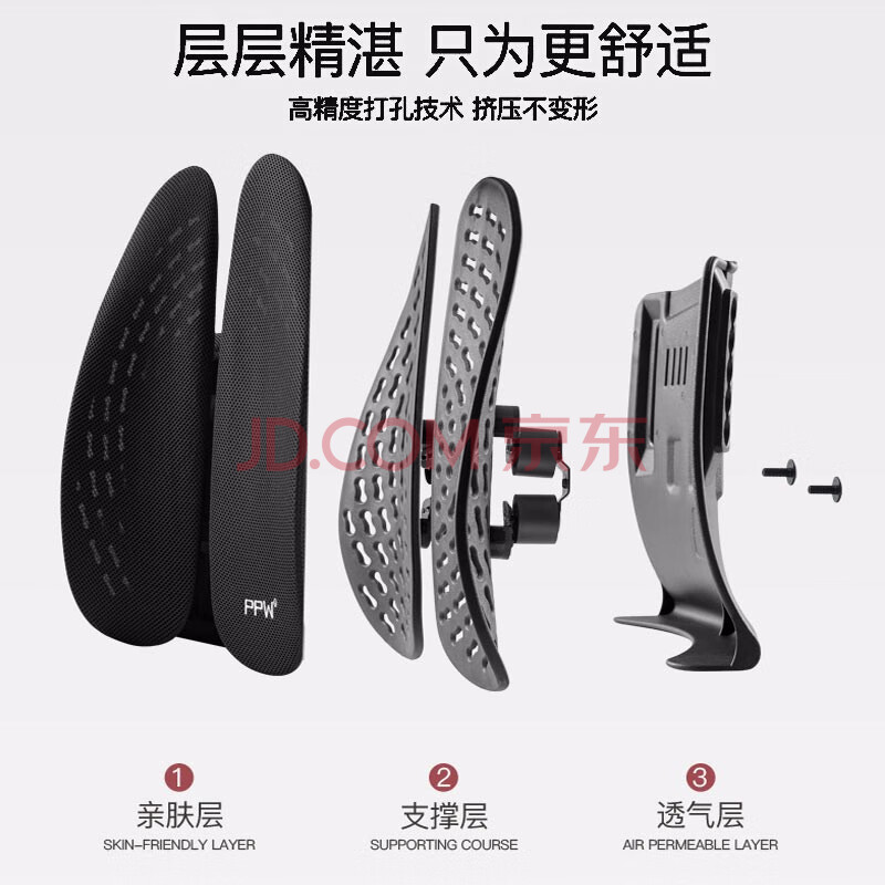 商品相册:PPW腰部靠垫人体工学腰垫椅子汽车腰靠腰托腰椎呵护办公室透气靠背第1张/共6