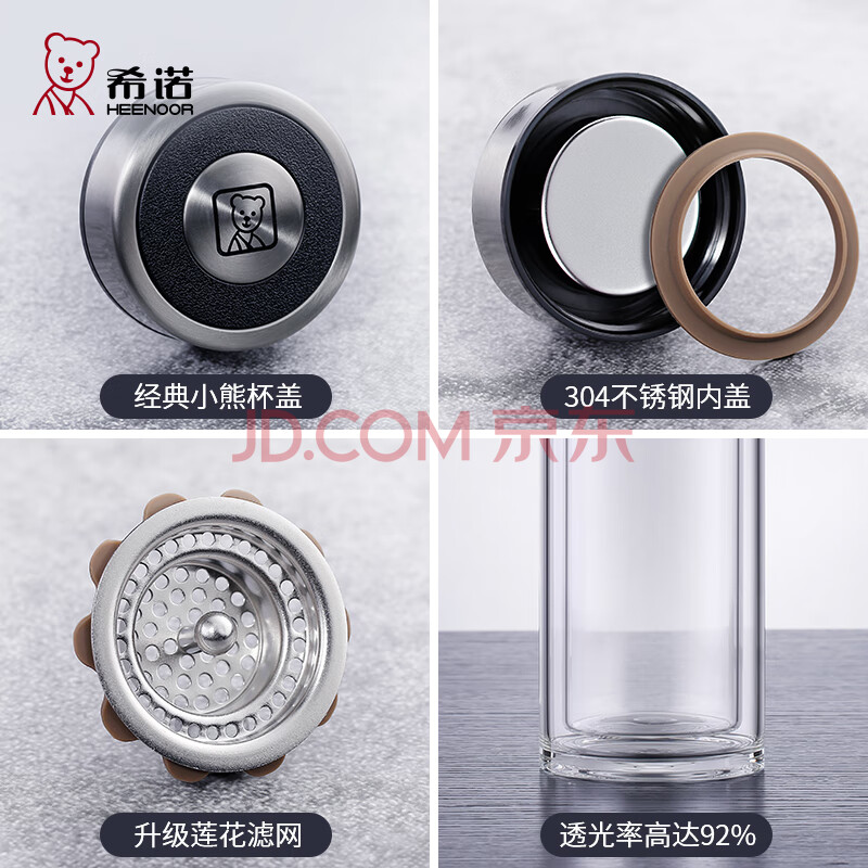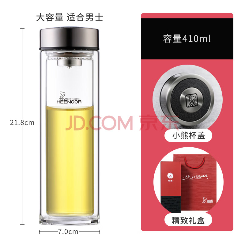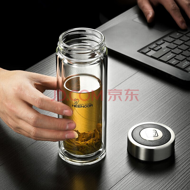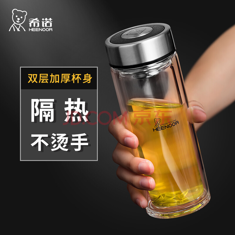 商品相册:希诺双层玻璃杯男家用商务办公泡茶杯子过滤车载水杯XN-9607 410mL第