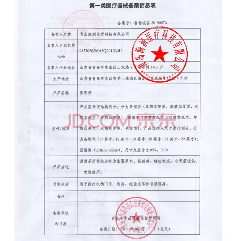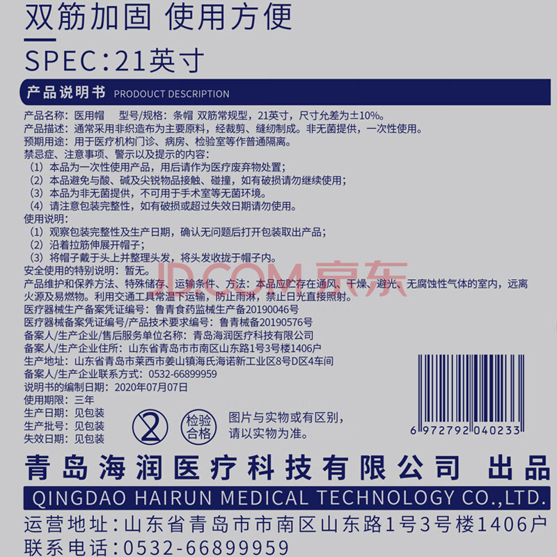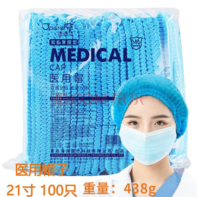 商品相册:海氏海诺一次性无纺布医用帽子手术帽防尘帽隔离帽防护双筋非无菌100只第