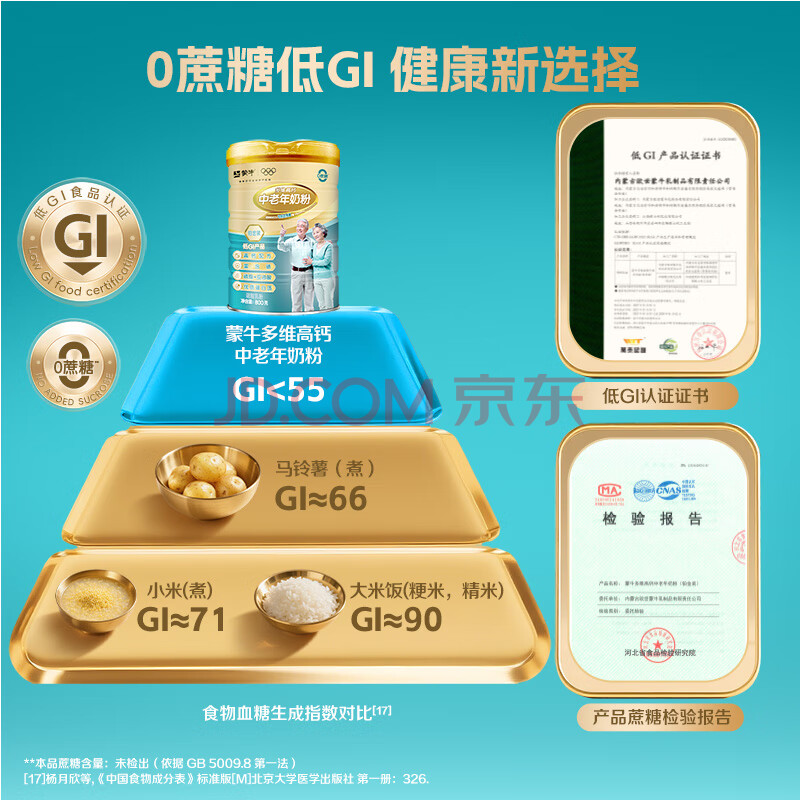 商品相册:蒙牛铂金装中老年益生菌高钙富硒奶粉800g*2罐礼盒装 送礼送父母第