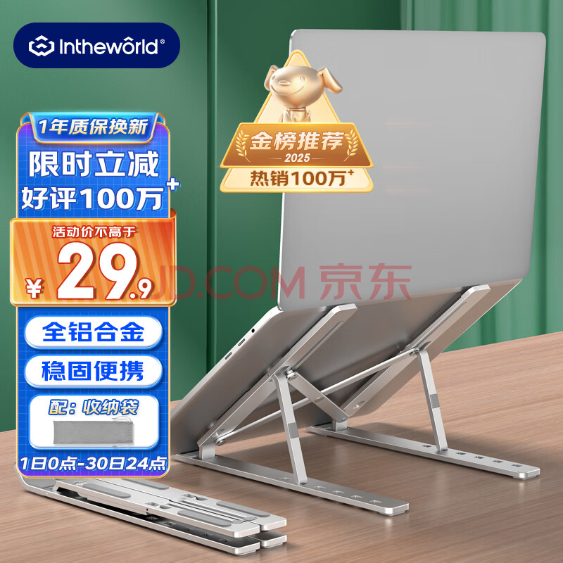 商品相册:极川 笔记本电脑支架散热器铝合金便携折叠桌面立式升降悬空手提电脑平板增高托架适用苹果Mac联想华为第