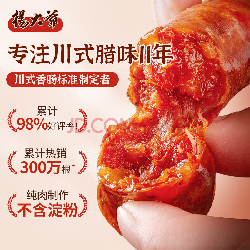 商品相册:杨大爷烟熏川味腊肠腊肉四川特产麻辣味香肠1斤装500g 需烹饪食用第