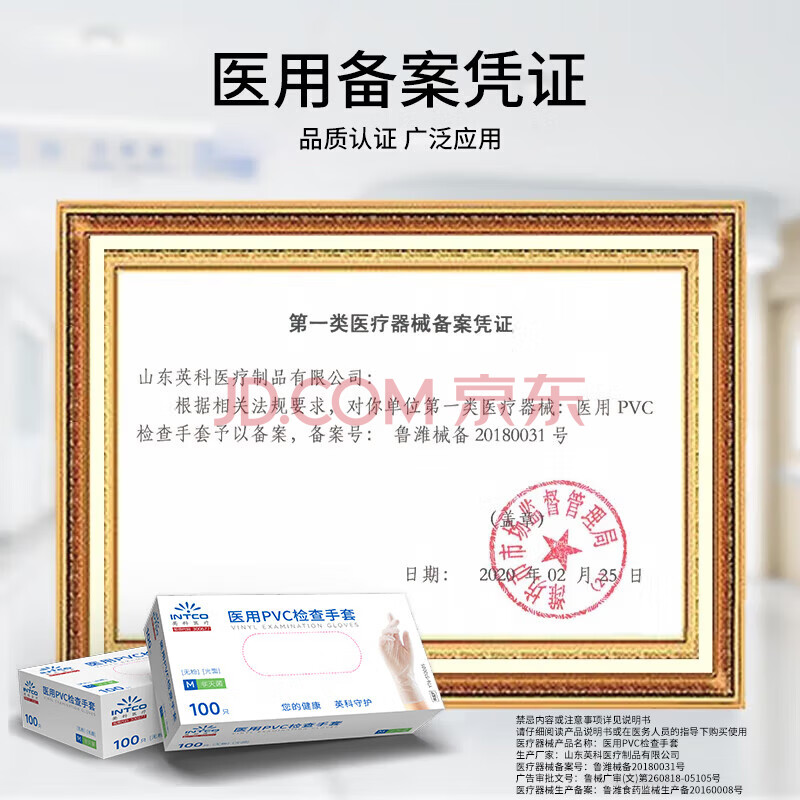 商品相册:英科医疗一次性医用手套PVC防护手套 清洁洗碗家务食品级手套 大号L码第