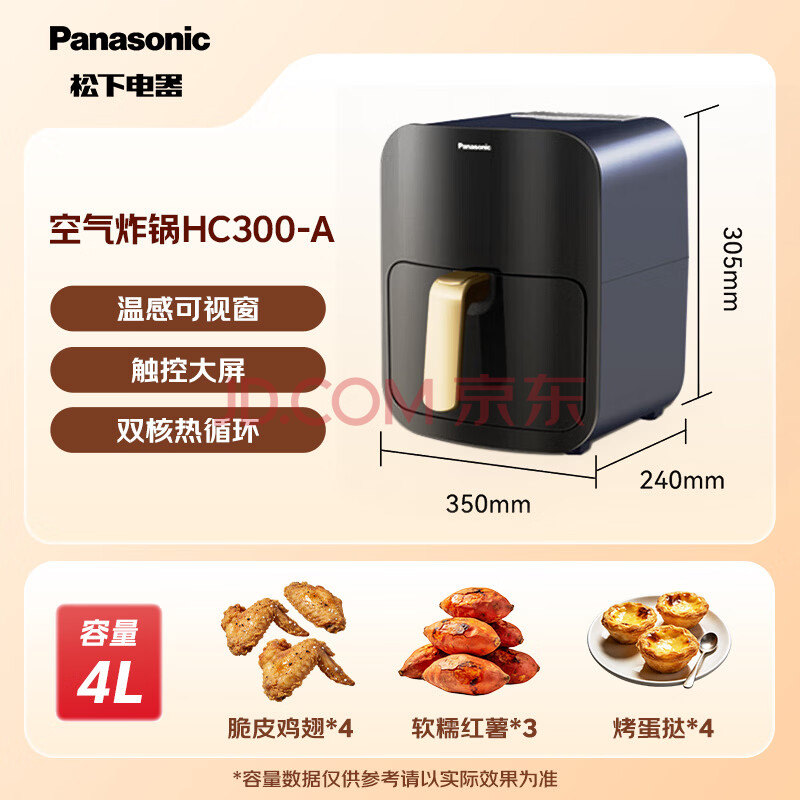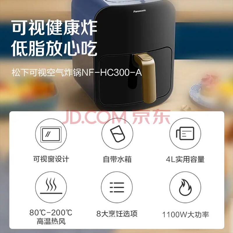 商品相册:松下(Panasonic)多功能可视家用全自动无油4L大容量空气炸锅NF-HC300-A第1张/共8