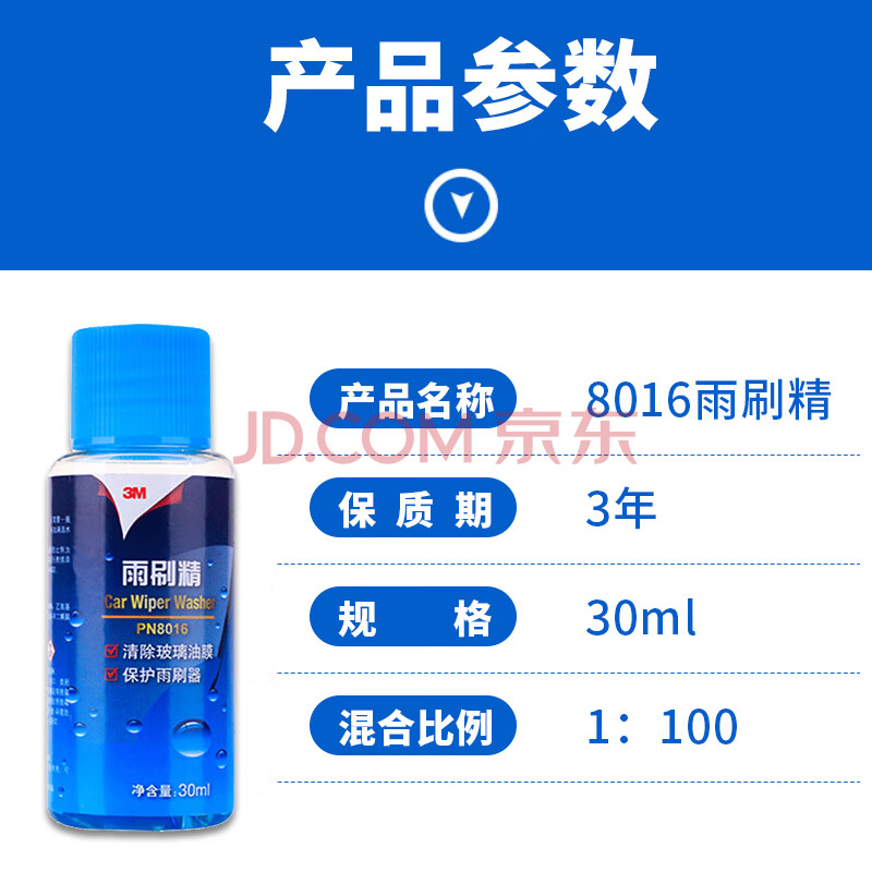 商品相册:3M 雨刷精PN8016 浓缩玻璃水30ml 5瓶装 汽车用品玻璃清洁去油膜第