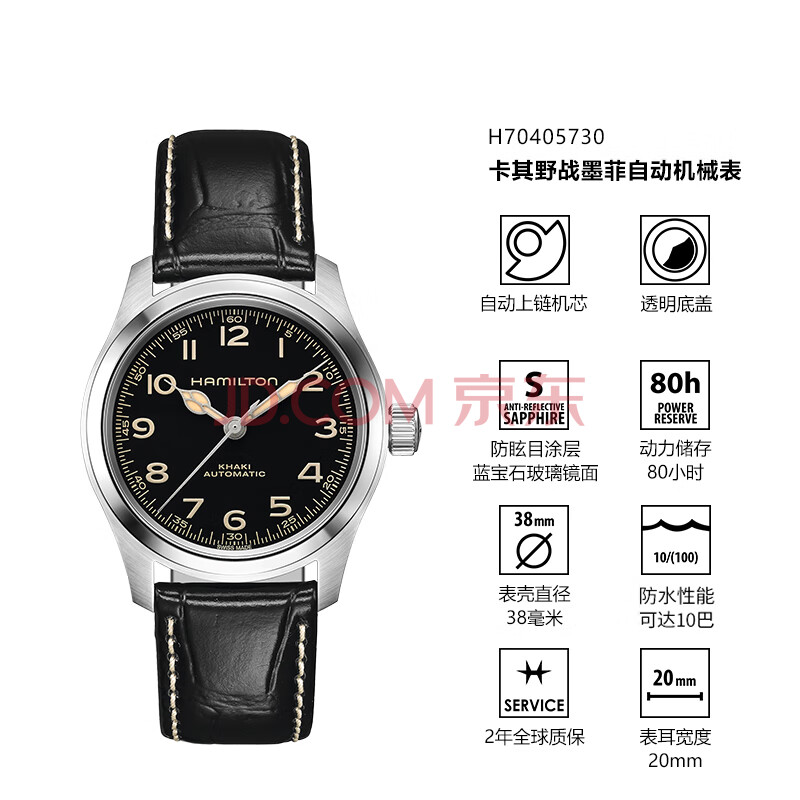商品相册:汉米尔顿(Hamilton)汉密尔顿墨菲表瑞士手表机械表38黑盘皮带中性表简约商务男士礼物第