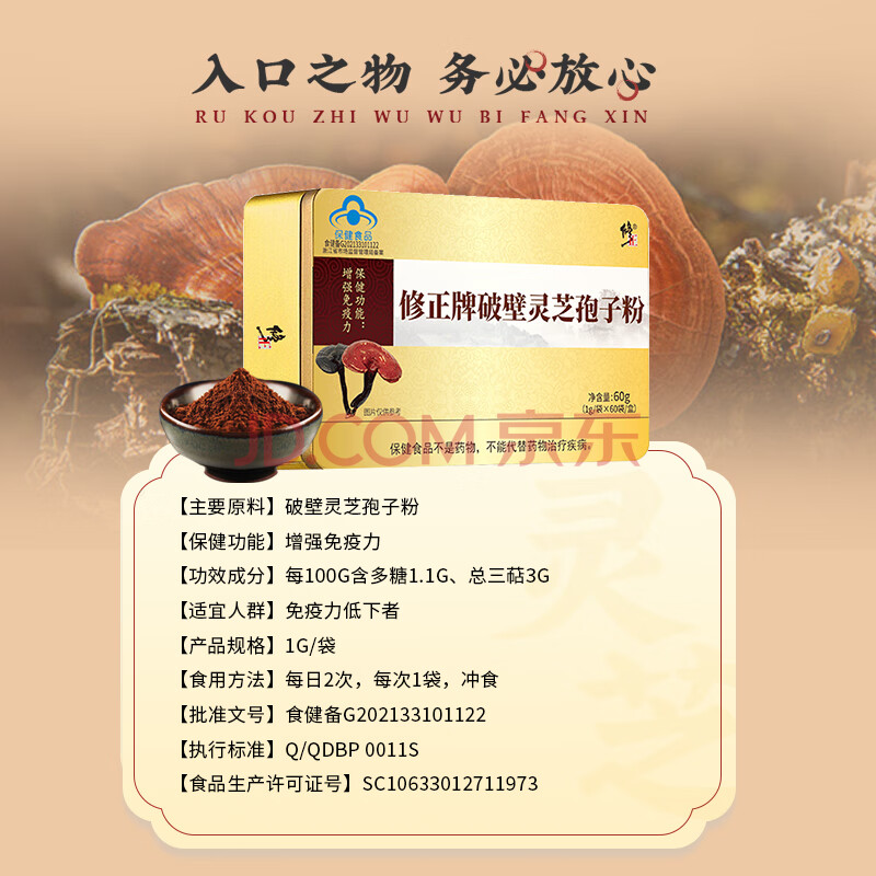 商品相册:修正破壁灵芝孢子粉增强免疫力中老年滋补过年送礼年货1g/袋*60袋/盒第