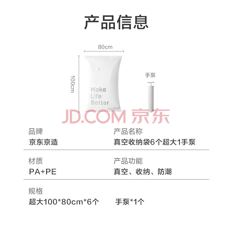 商品相册:京东京造 简约生活真空收纳袋 搬家打包袋压缩袋7件套衣物【6超大+1手泵】第