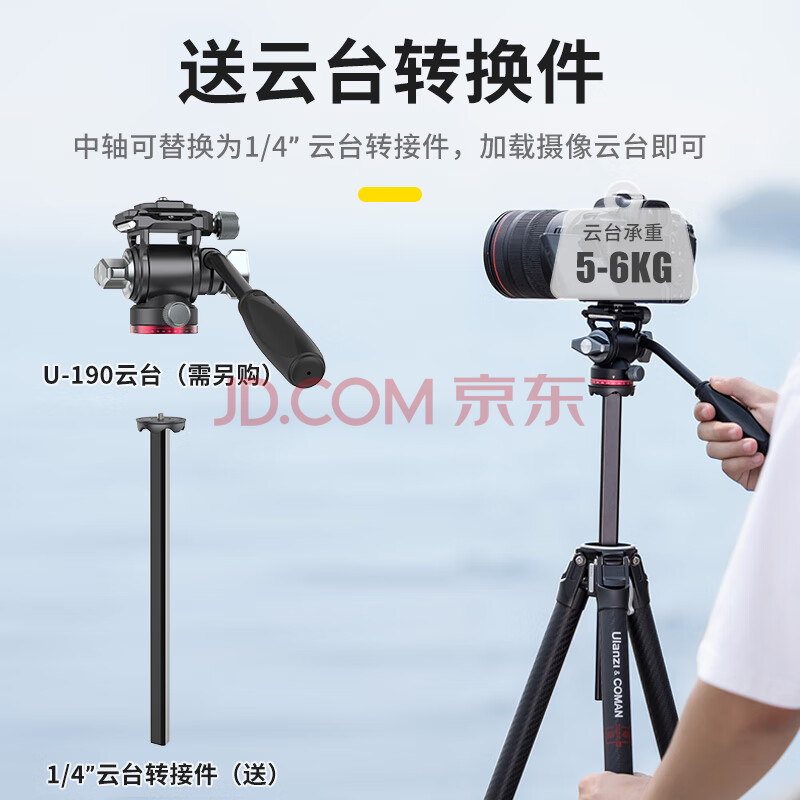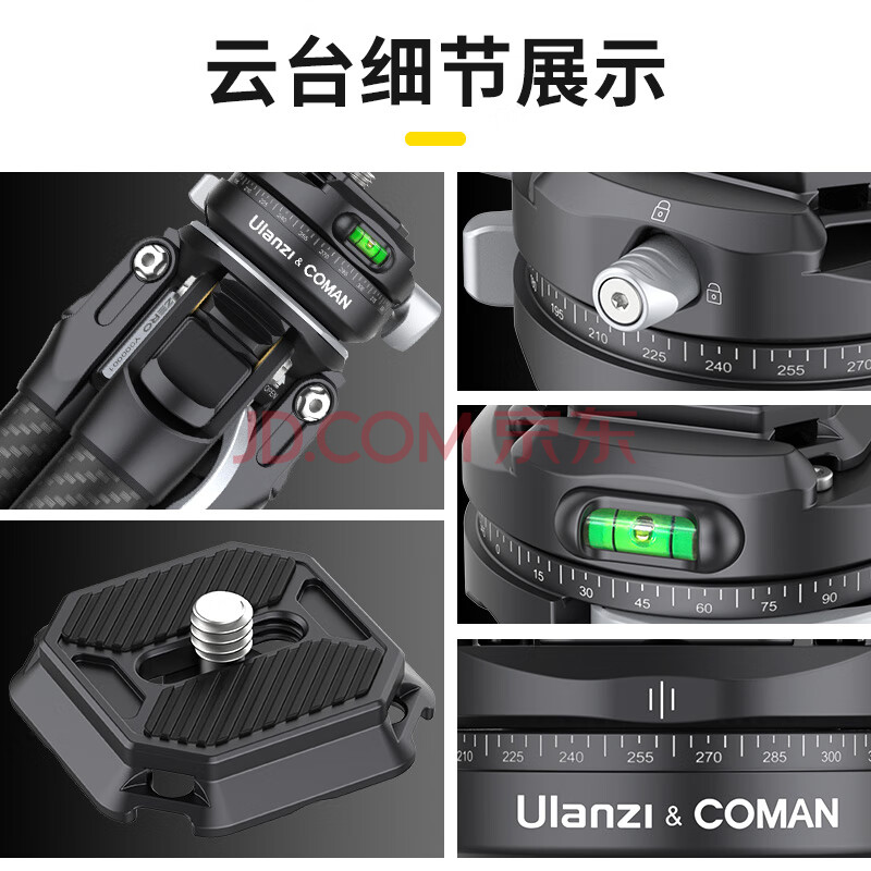 商品相册:ulanzi优篮子 ZERO F38快装旅行户外专业碳纤维三脚架摄像机单反云台摄影手机拍照便携碗式云台相机支架第