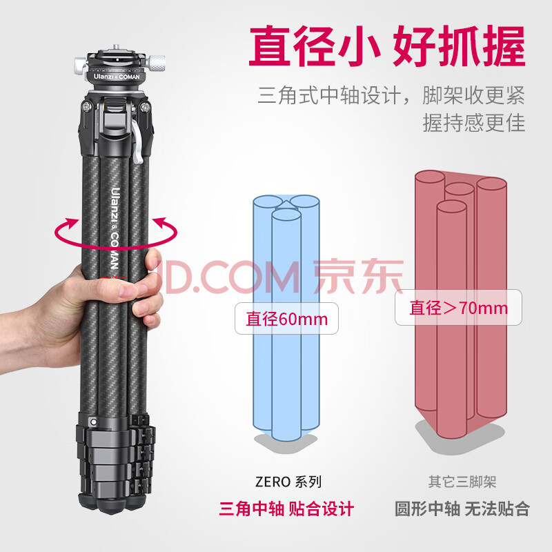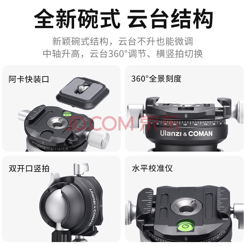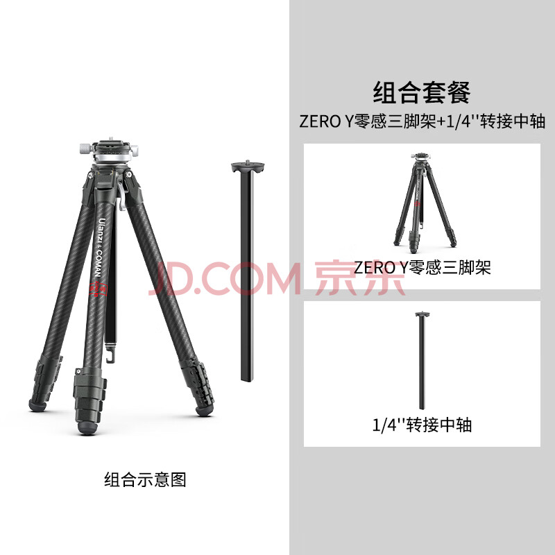 商品相册:ulanzi优篮子ZERO Y零感户外专业碳纤维三脚架1/4转接中轴套装摄像机单反云台摄影拍照便携云台三角架第