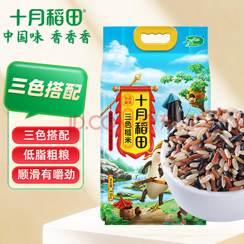 商品相册:十月稻田 三色糙米 5斤 五谷杂粮米 粗粮粥饭 主食 新米 糙米 黑米 家庭装第
