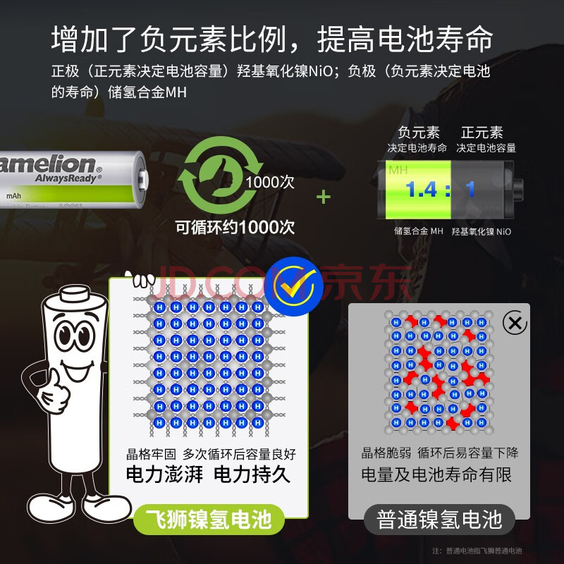 商品相册:飞狮(Camelion)低自放镍氢充电电池 7号/七号/AAA 900毫安时4节 鼠标/键盘/遥控器/玩具/手电筒第