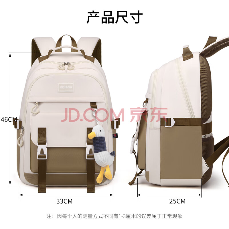 商品相册:爱迪生发明家初中生书包大容量多隔层背包男女生高中学生双肩包 K071-3 卡其色第