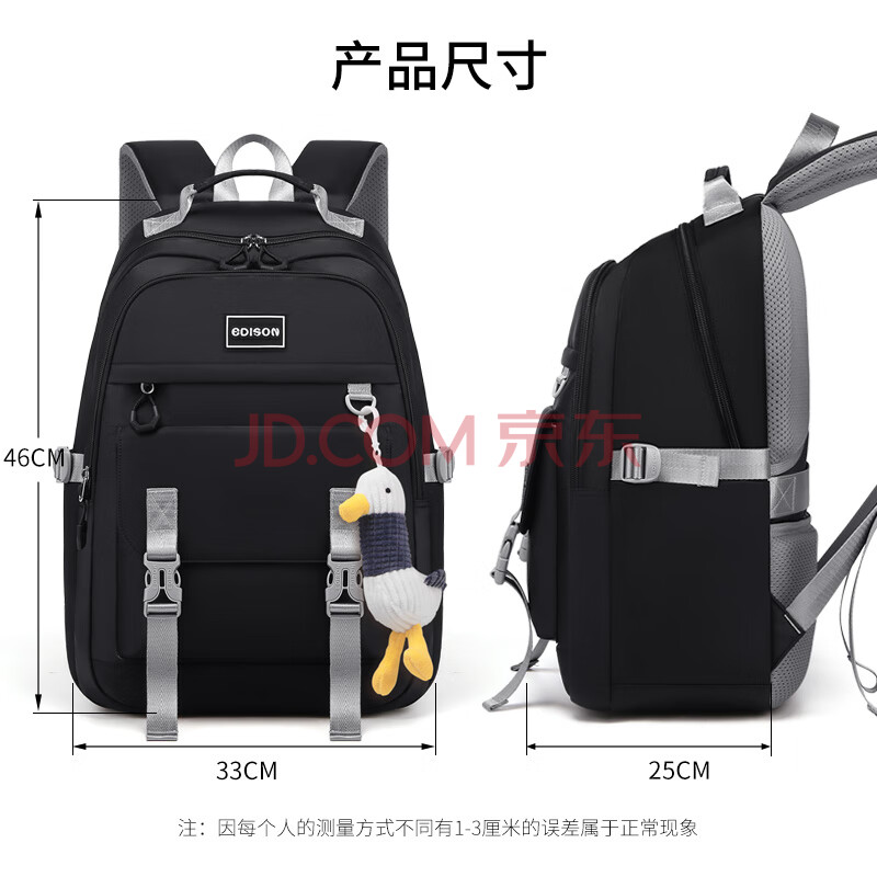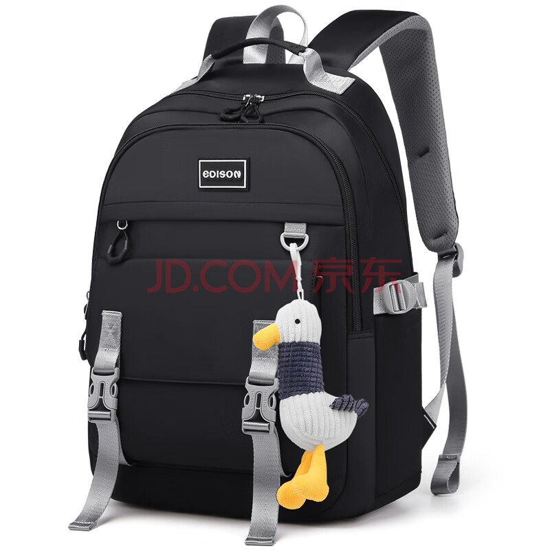 商品相册:爱迪生发明家初中生书包大容量多隔层背包男女高中学生简约双肩包 K071-1 黑色第