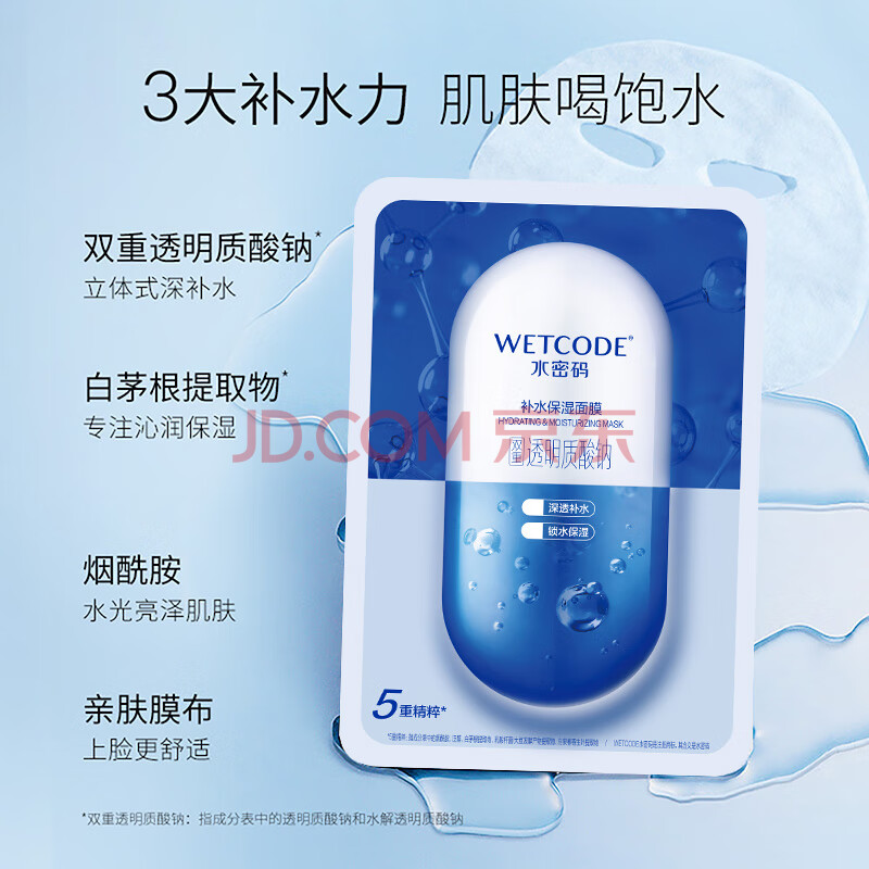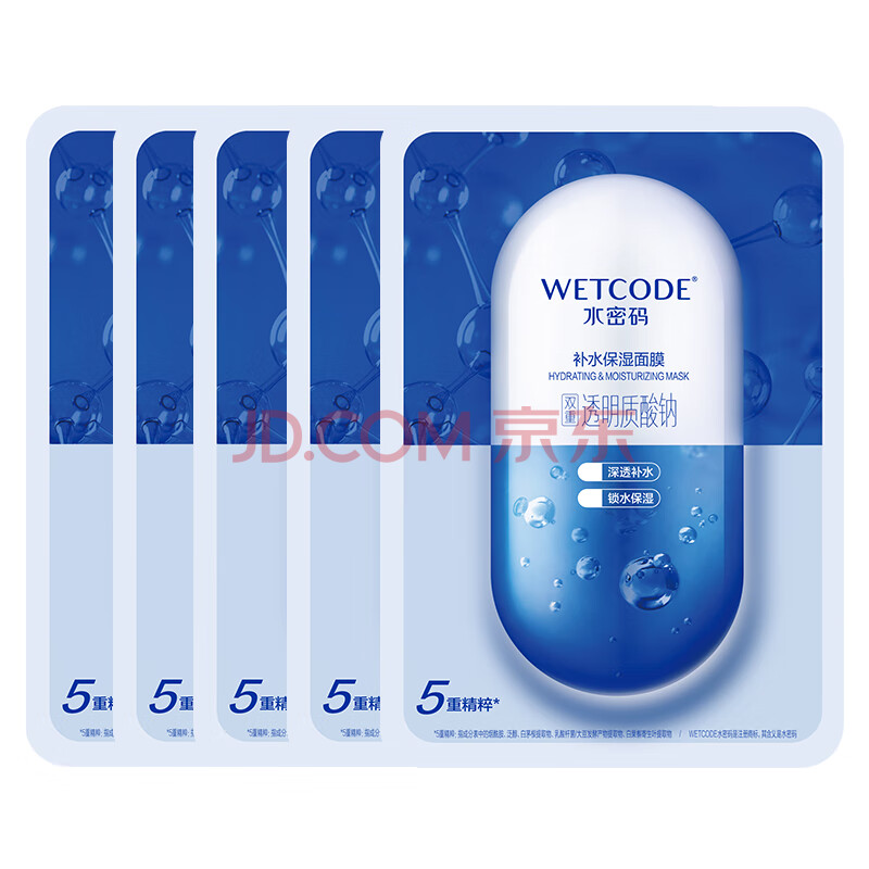 商品相册:水密码玻尿酸补水面膜25g*5片保湿深层滋润男女面膜第