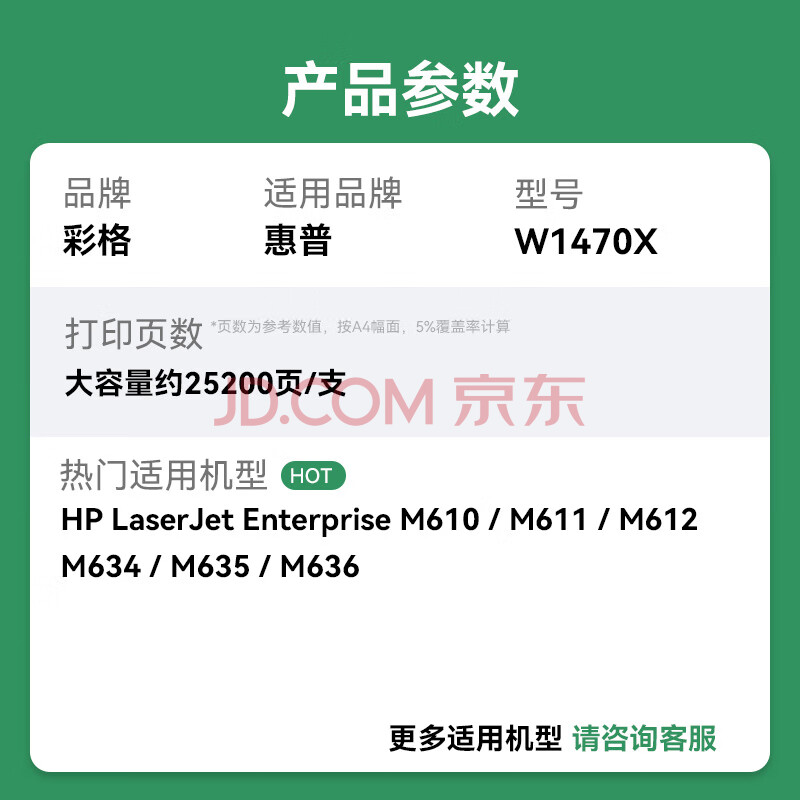 商品相册:彩格147a硒鼓适用惠普M611DN硒鼓W1470A硒鼓m610dn打印机墨盒 M634h M635z碳粉盒硒鼓碳粉盒147x带芯片双支装第