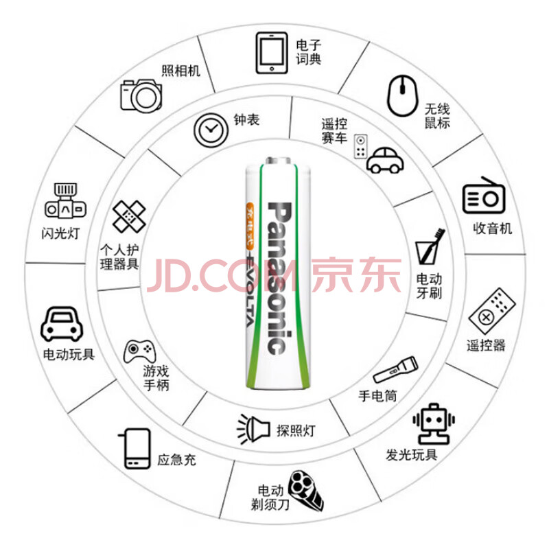 商品相册:松下(Panasonic)5号五号充电电池4节三洋爱乐普技术适用于话筒相机玩具等无充电器HHR-3MRC/4B第