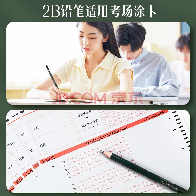 商品相册:得力 素描绘图2B铅笔 六角笔杆铅笔 优质石墨环保椴木 考试专用 出游写生 12支/盒 7084第