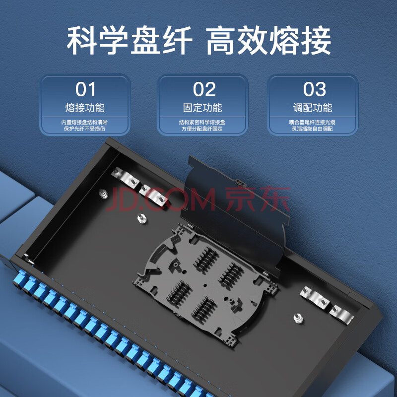 商品相册:中科光电 光纤终端盒24口24芯光纤配线架 光缆接续盒接线熔纤盒SC单模满配尾纤法兰 机架式 ZK-GXH-24SC-SM第