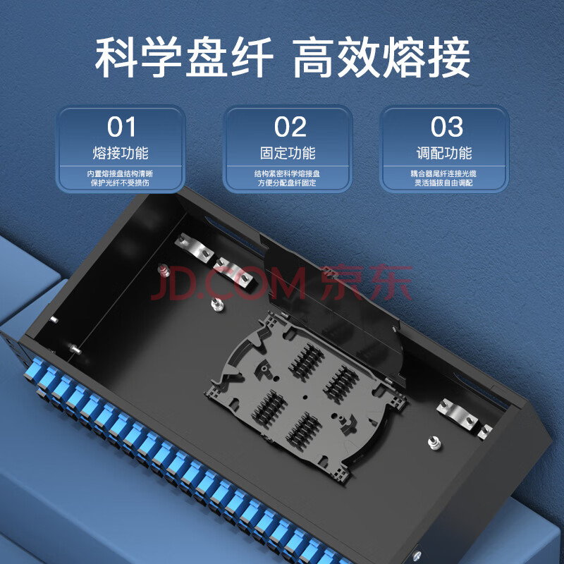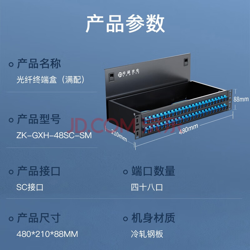 商品相册:中科光电 光纤终端盒48口48芯光纤配线架 光缆接续盒接线熔纤盒SC单模满配尾纤法兰 机架式 ZK-GXH-48SC-SM第